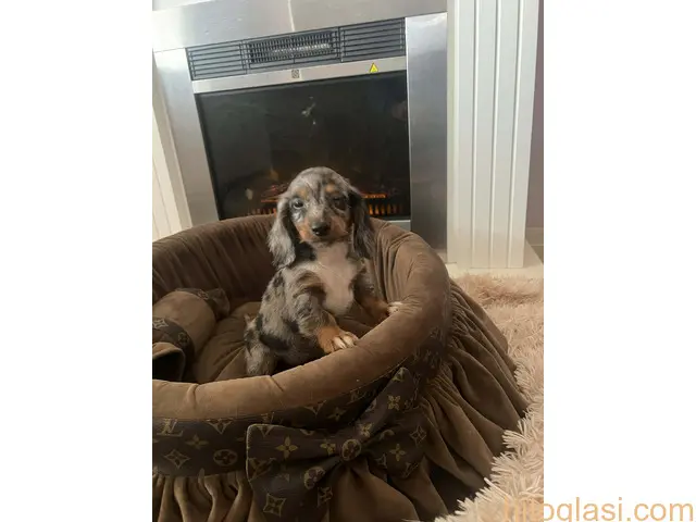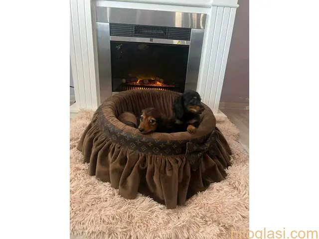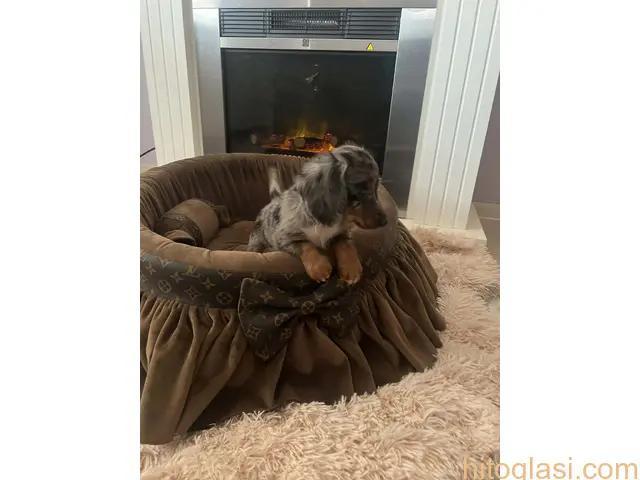 Dugodlaki patuljasti jazavičari. Štenci su očišćeni od parazita i imaju dve vakcine protiv zaraznih bolesti, socijalizovani. Uz svako štene dobijate početni paket granula, klinički pregled kod veterinara, kao i čip i pasoš. Štenci poseduju FCI pedigree. Djordje Relić Rumenka, Srbija +381631074438 Cena je 700-1500e u zavisnosti od boje   Dugodlaki patuljasti jazavičari +381631074438