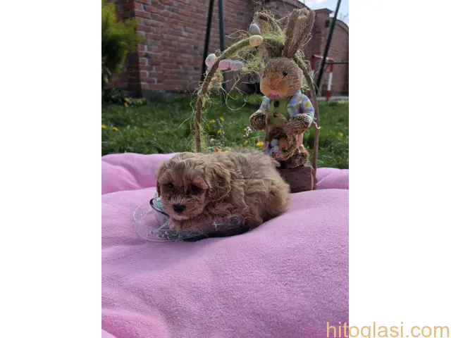 Predstavljamo vam novo leglo bebica maltipoo. Mama je mali maltezer a tata je toy crvena pudla. Bebice su prelepih glavaica totalne pigmentacije, malog rasta i sitne gradje. Predivne naravi, puni ljubavi i neznosti. Ne linjaju se i nemaju neprijatnih mirisa, savrseni su za zivot u stanu ili kuci. Moguca je dostava uz dogovor Za prave ljubitelje maltipoo kontakt telefon je Tel/Viber: +381(0)621437740 Slavko, Novi Sad