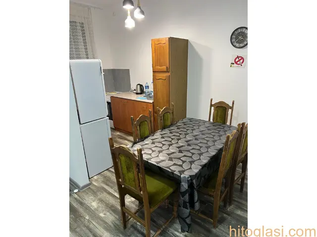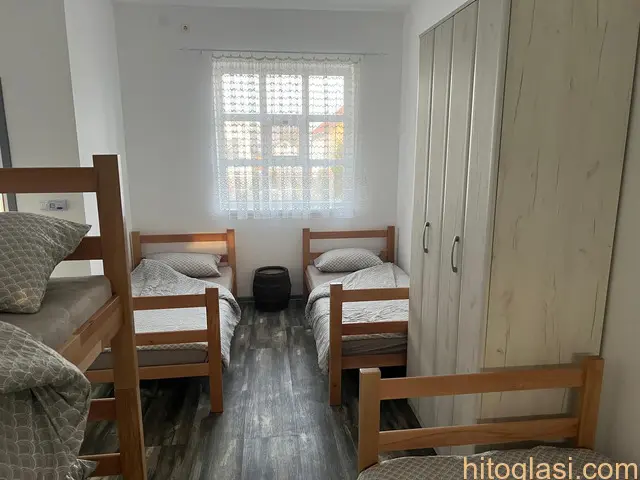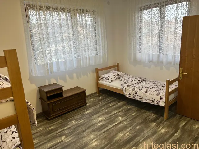 Izdajem smestaj/apartmane u kuci do max. 10 osoba ili manje, u Jarkovcima/Indjija.  Prostorije/apartmani se nalaze u prizemlju kuce i sastoje se od tri zasebne jedinice: Prva jedinica (moze zajedno sa trecom jedinicom ili sve zajedno):  zaseban ulaz predsoblje  velika soba s 5 kreveta i ormarima  kupatilo s wc-om Druga jedinica (moze zajedno sa trecom jedinicom ili sve zajedno):  zaseban ulaz predsoblje  velika soba s 5 kreveta i ormarima kupatilo s wc-om  Treca (zajednicka) jedinica (moze se izdati i kao dio prve ili druge jedinice ili sve zajedno, odvojeno ne) terasa hodnik kuhinja s trpezarijom/dnevni boravak – zaseban ulaz kupatilo s wc-om  vanjski parking